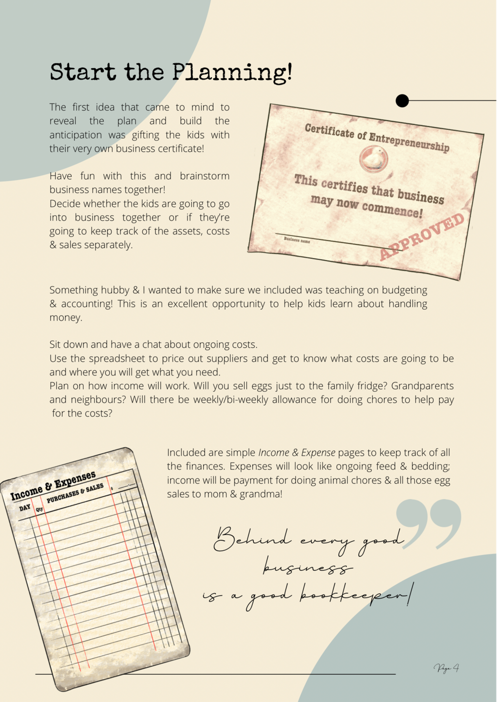I've got a certificate of entrepreneurship & coupons to get them started with a helping hand from mom & dad PLUS some cute pages for planning, accounting & chores!